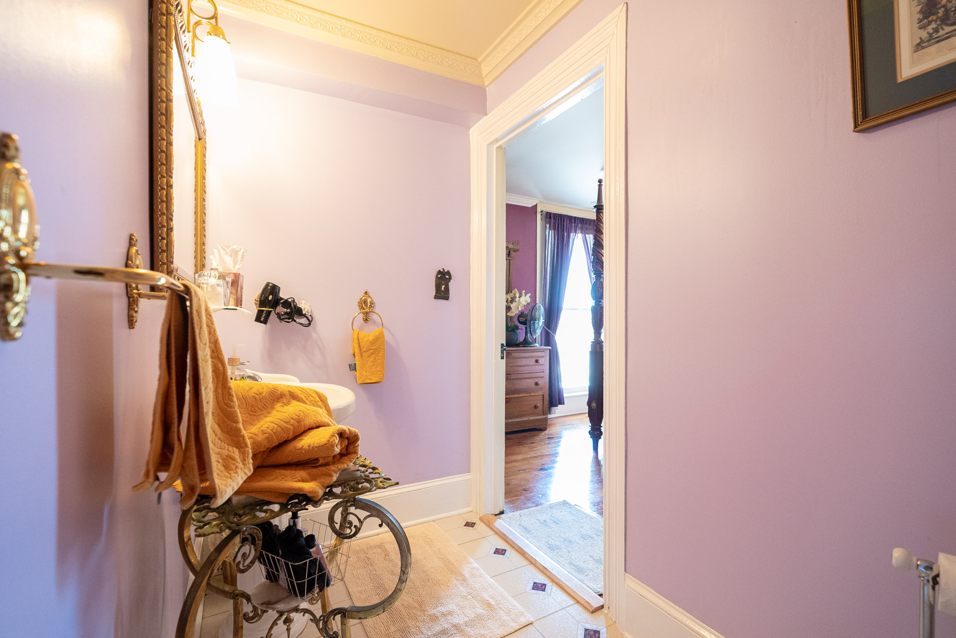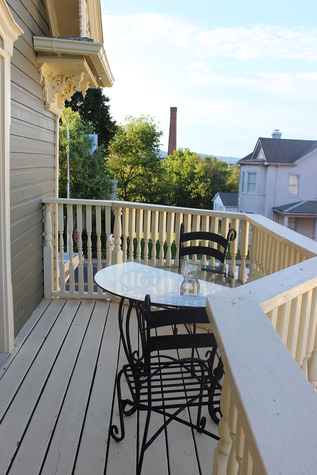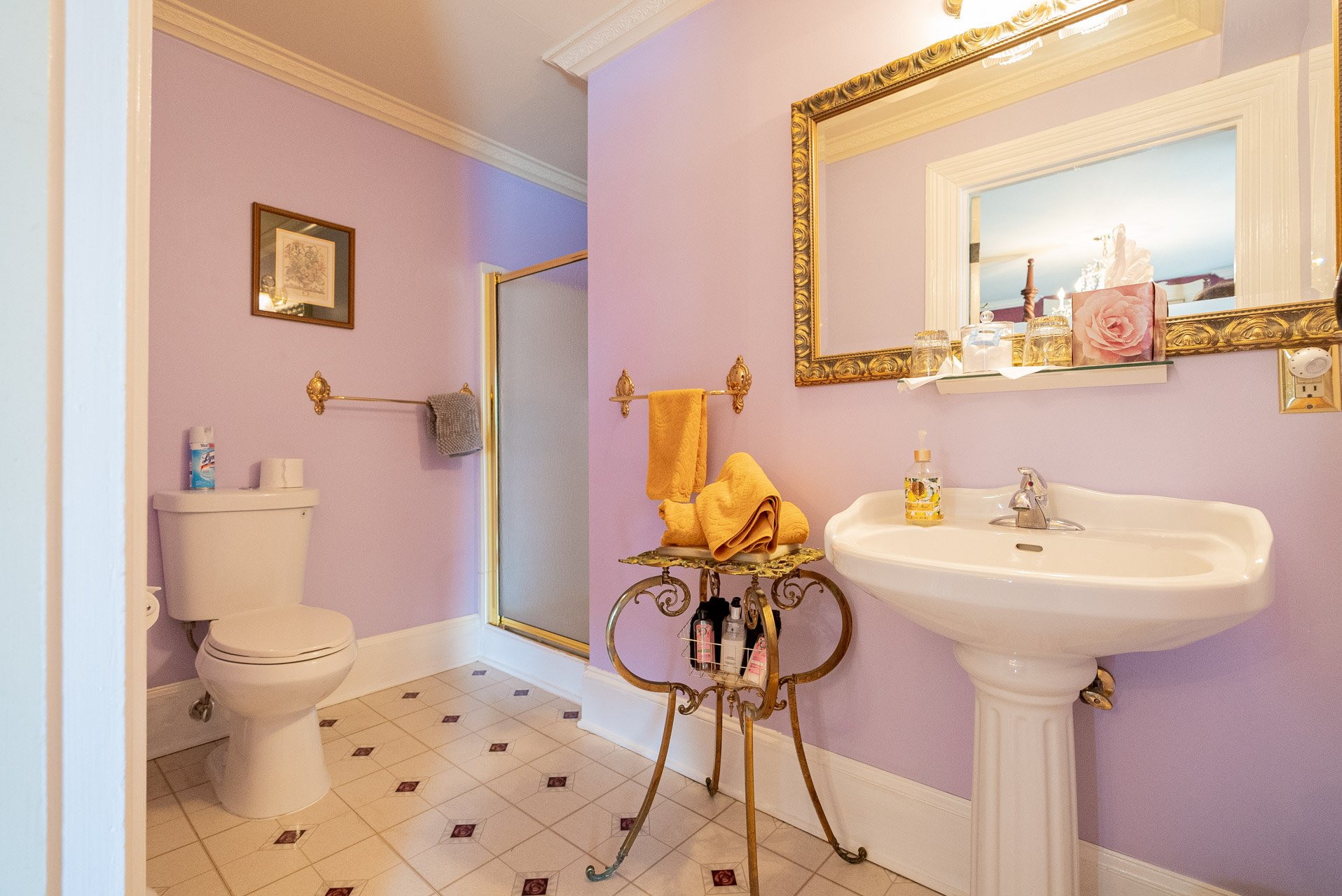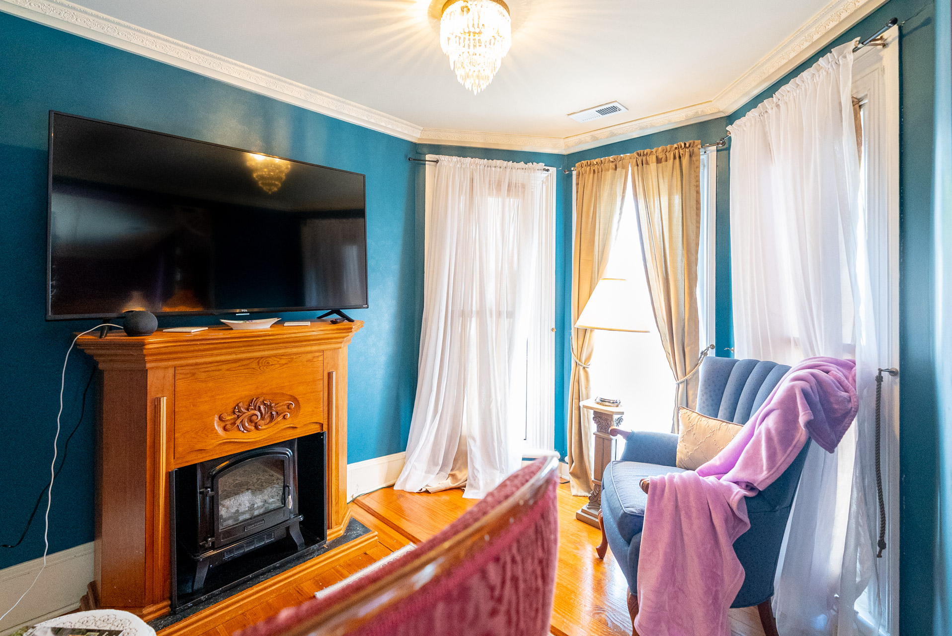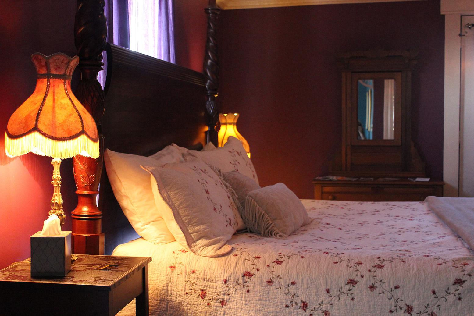 A truly luxurious retreat. You will revel in the comfort of the King Size Four Poster Bed after relaxing in the in-room “Jacuzzi for Two”. This unique suite features a quaint turret sitting room with electric fireplace, full private bath, and private outdoor balcony. Includes Gourmet Breakfast.